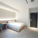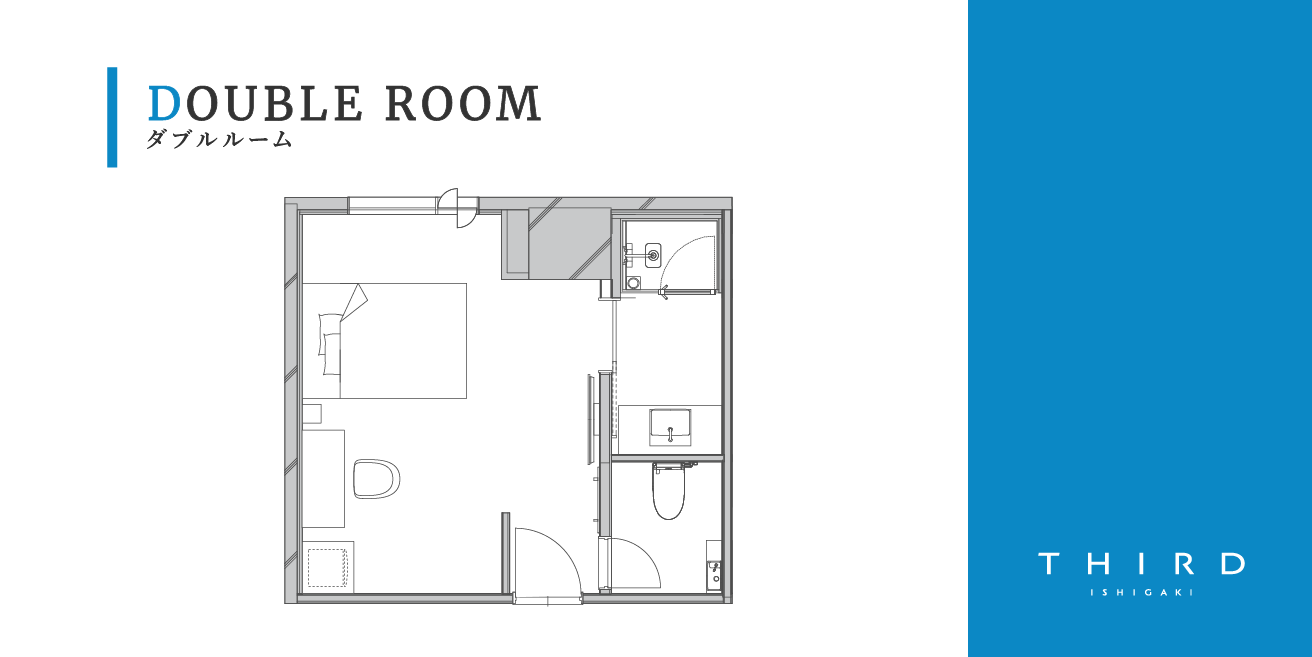 ベッドとテーブルのみのコンパクトでシンプルなダブル。ワーケーションやひとり旅には適したお部屋です。おやすみの際は、少しゆったりとしたダブルベッドで快適にお過ごしください。