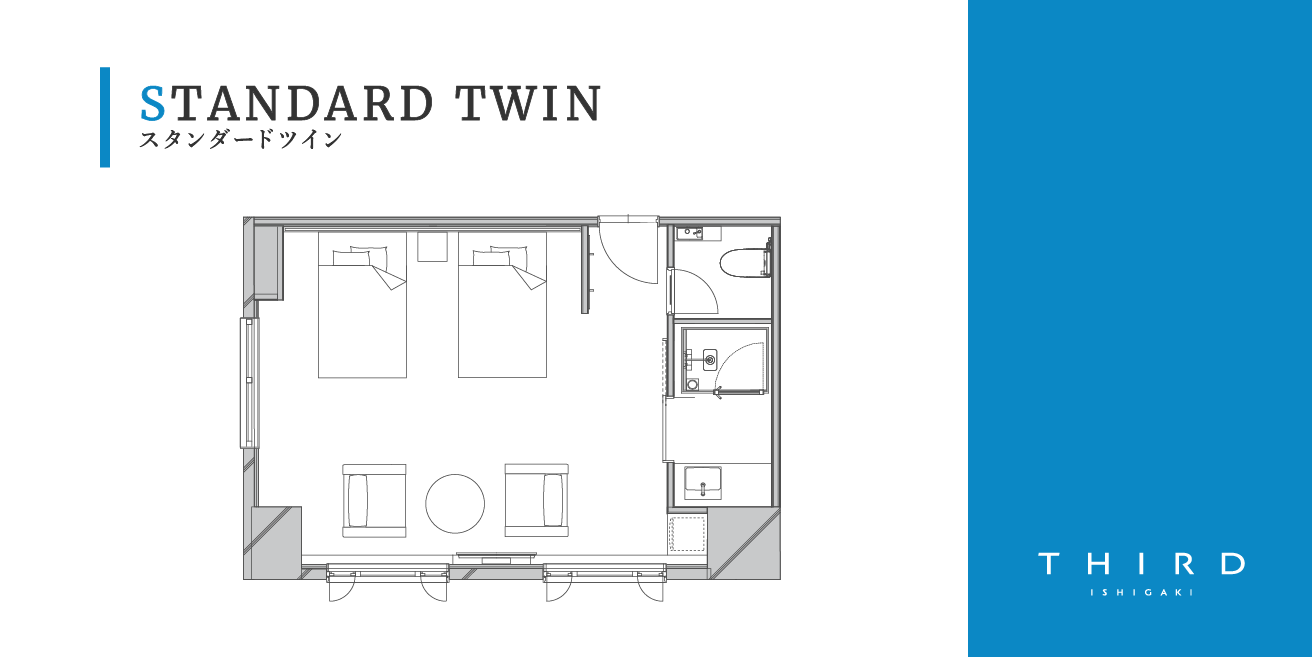 遊び心あるロフトがある、ツインルーム。大切な友人やパートナーとのステイを楽しみたい方のために。同じ部屋で過ごす時間は、旅の時間をより上質に。セミダブルサイズベッドが2つあります。